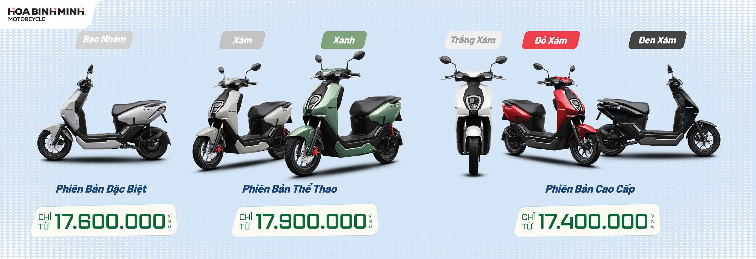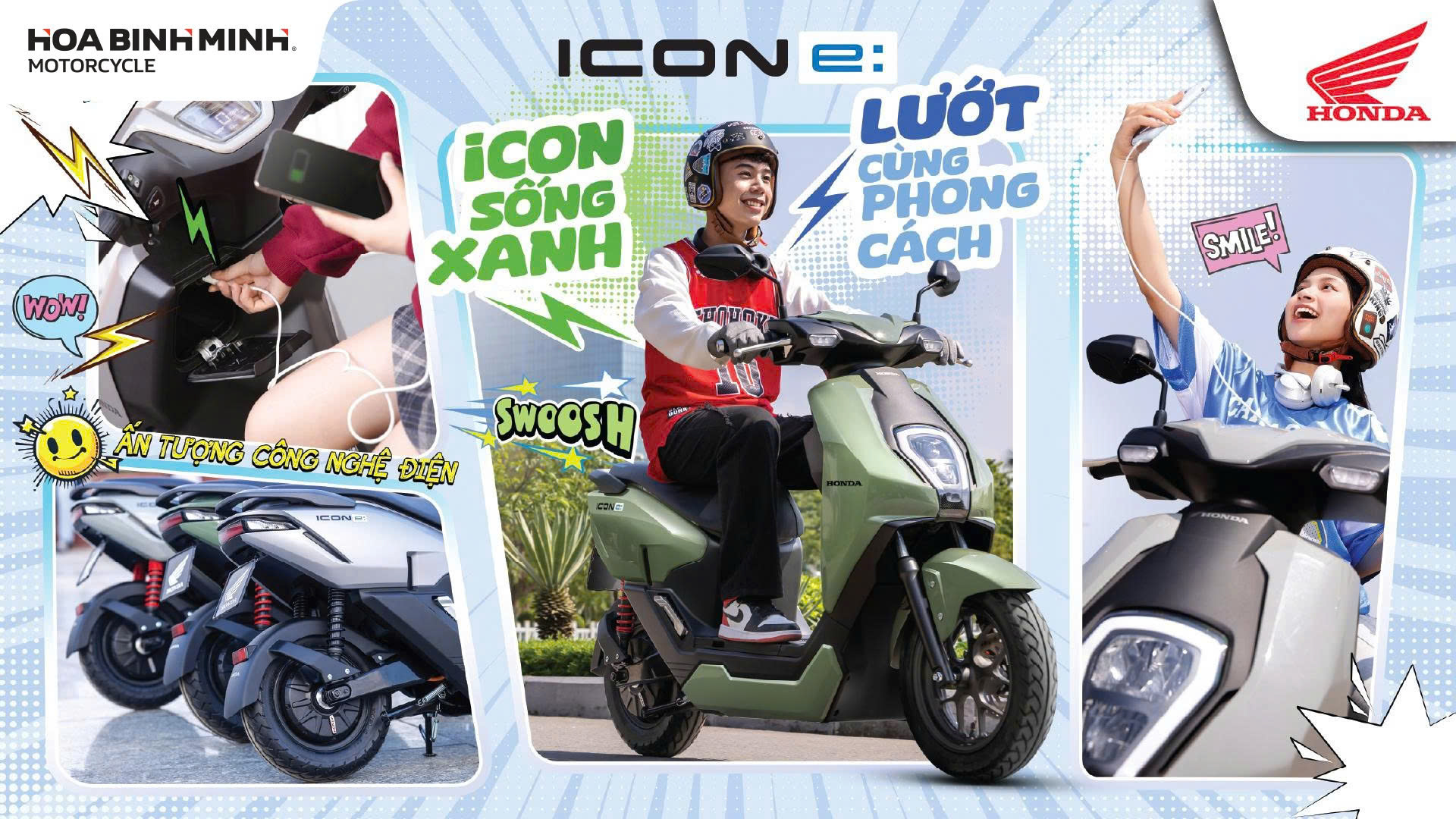 Honda ICON e – mẫu xe điện mới nhất của Honda – đang tạo nên “cơn sốt” trong giới trẻ nhờ thiết kế hiện đại, nhỏ gọn, vận hành êm ái và cực kỳ tiết kiệm chi phí. Và giờ đây, cơ hội sở hữu ICON e càng dễ dàng hơn bao giờ hết khi Xe máy Hoà Bình Minh triển khai ưu đãi siêu lớn, áp dụng từ nay đến 31/12/2025.