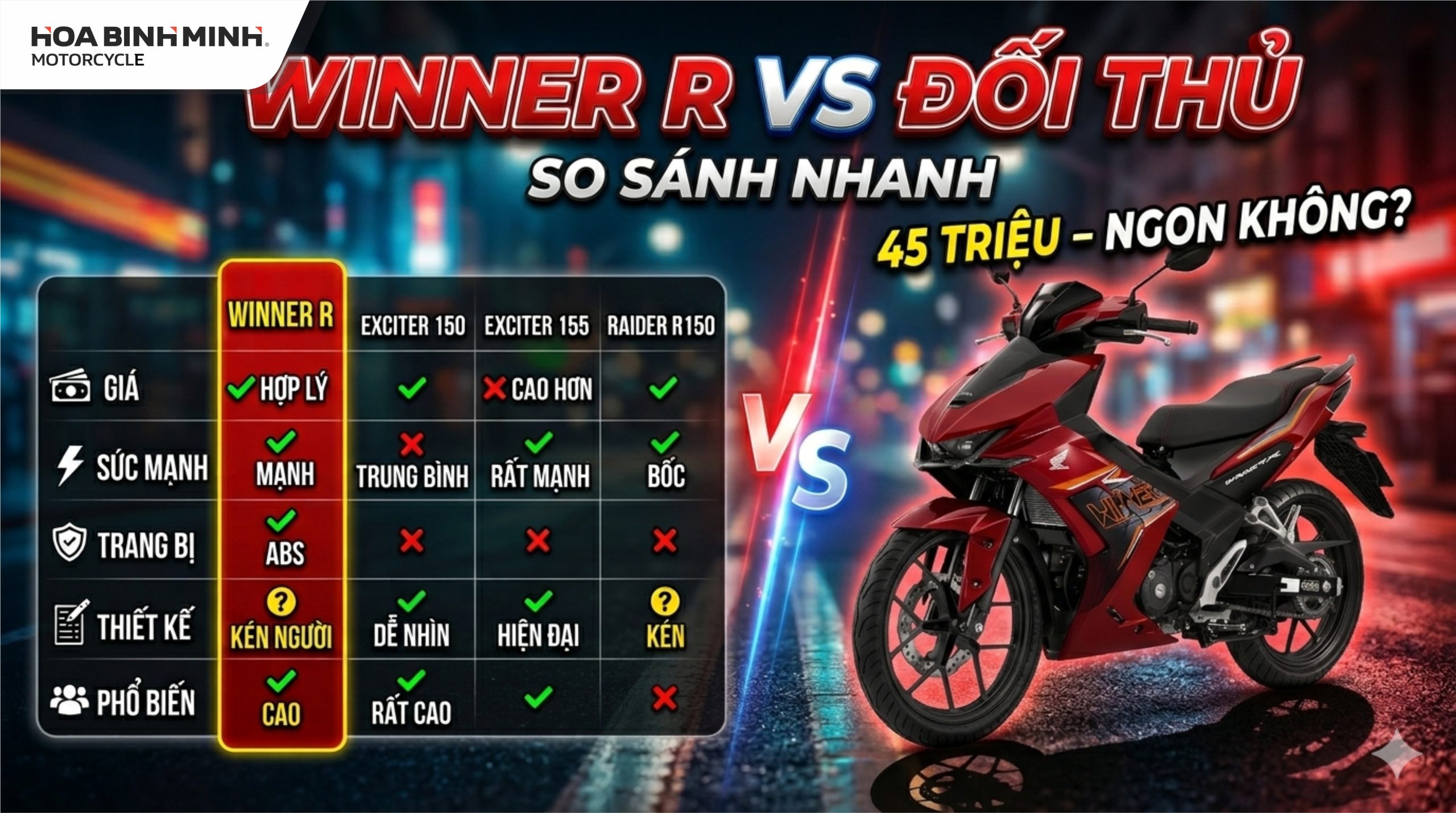 👉 Kết luận nhanh: Winner R vẫn là lựa chọn an toàn, dễ tiếp cận, phù hợp người mới chơi xe côn tay.